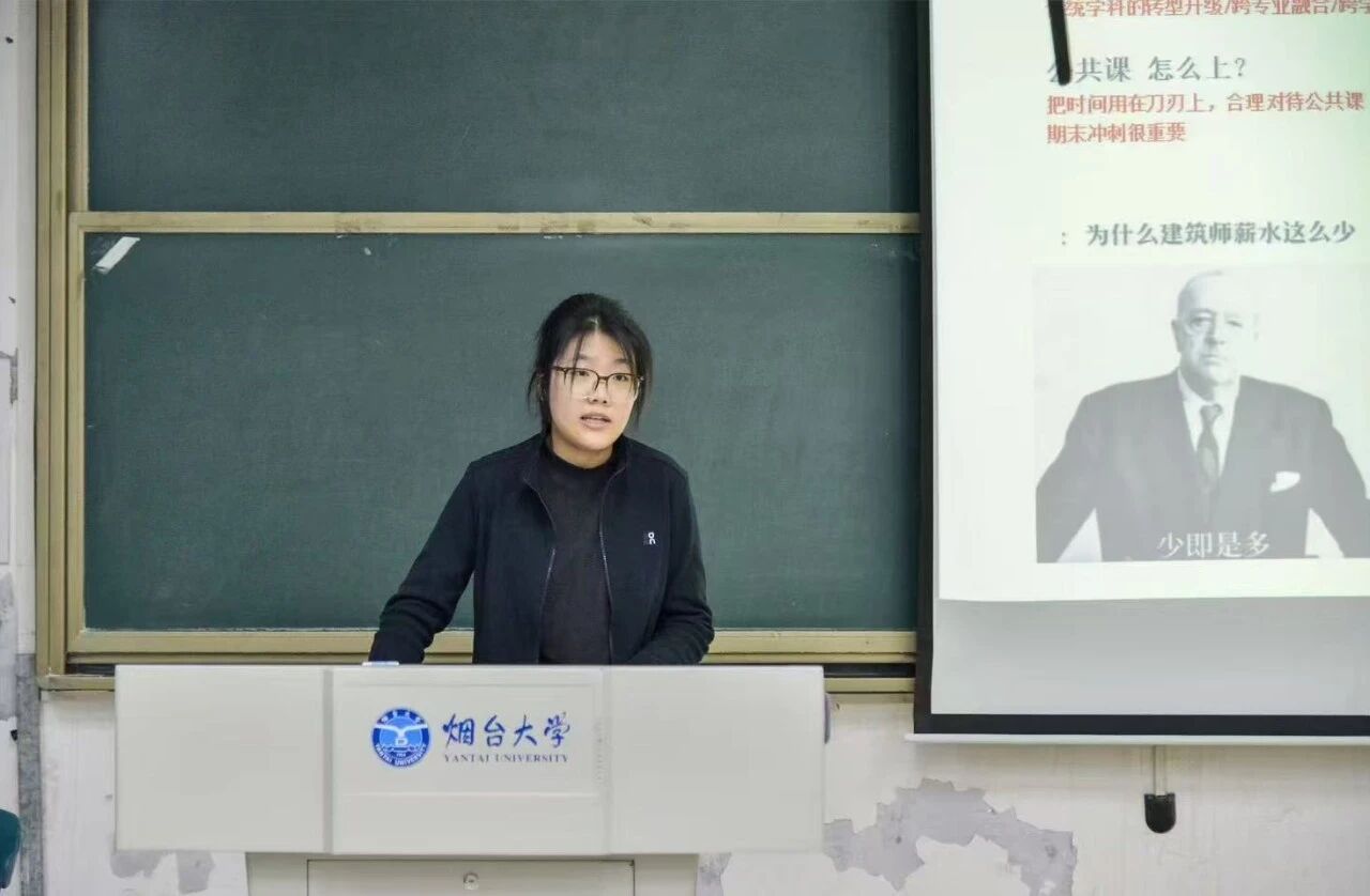 聚焦学习方法与社会实践,围绕专业方向与课程基础。建231-1班丁虹文结合自身学习与社会实践经历,重点强调了整理笔记和软件学习的重要性,并分享了参与社会实践的具体流程与收获。来自建231-1班的曹昕怡则围绕就业方向展开分享,她结合个人经历,详细阐述了综测成绩与竞赛经历在职业发展中的重要作用,内容详实,引人深思。接着,建241-2班王梦晗从专业方向与课程基础入手,细致讲解了建筑学相关课程的学习要点,并分享了如何在学业与学生工作之间找到平衡点。