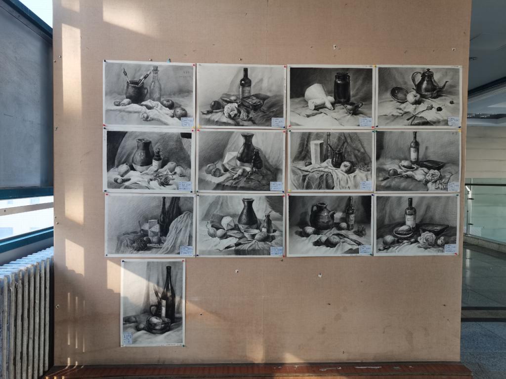 展厅内,一幅幅兼具功底与创意的作品整齐陈列,成为校园里一道亮眼的艺术风景线,炭笔与铅笔绘制的作品构建出一个静谧而专注的视觉场域。该展览分为两大模块: