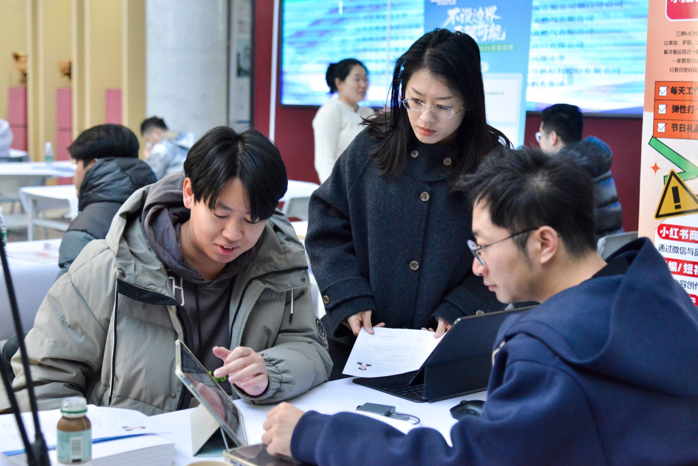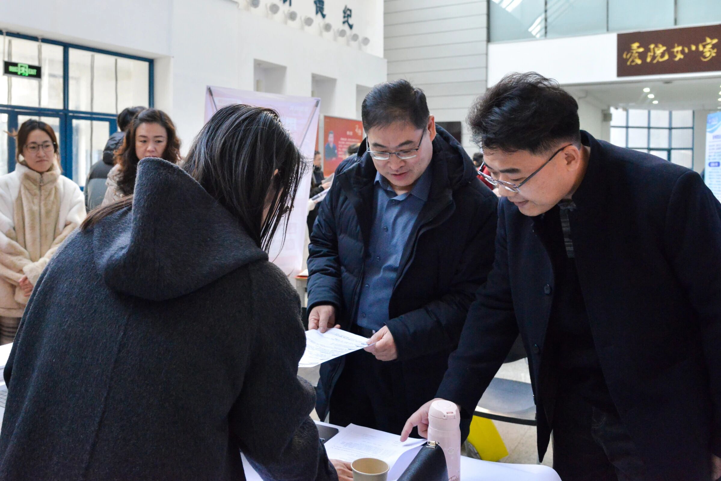12月30日,建筑学院与马克思主义学院、文学与新闻传播学院、数学与信息科学学院在建筑馆联合举办烟台大学“数智文心•思建未来”2026届毕业生专场招聘会。